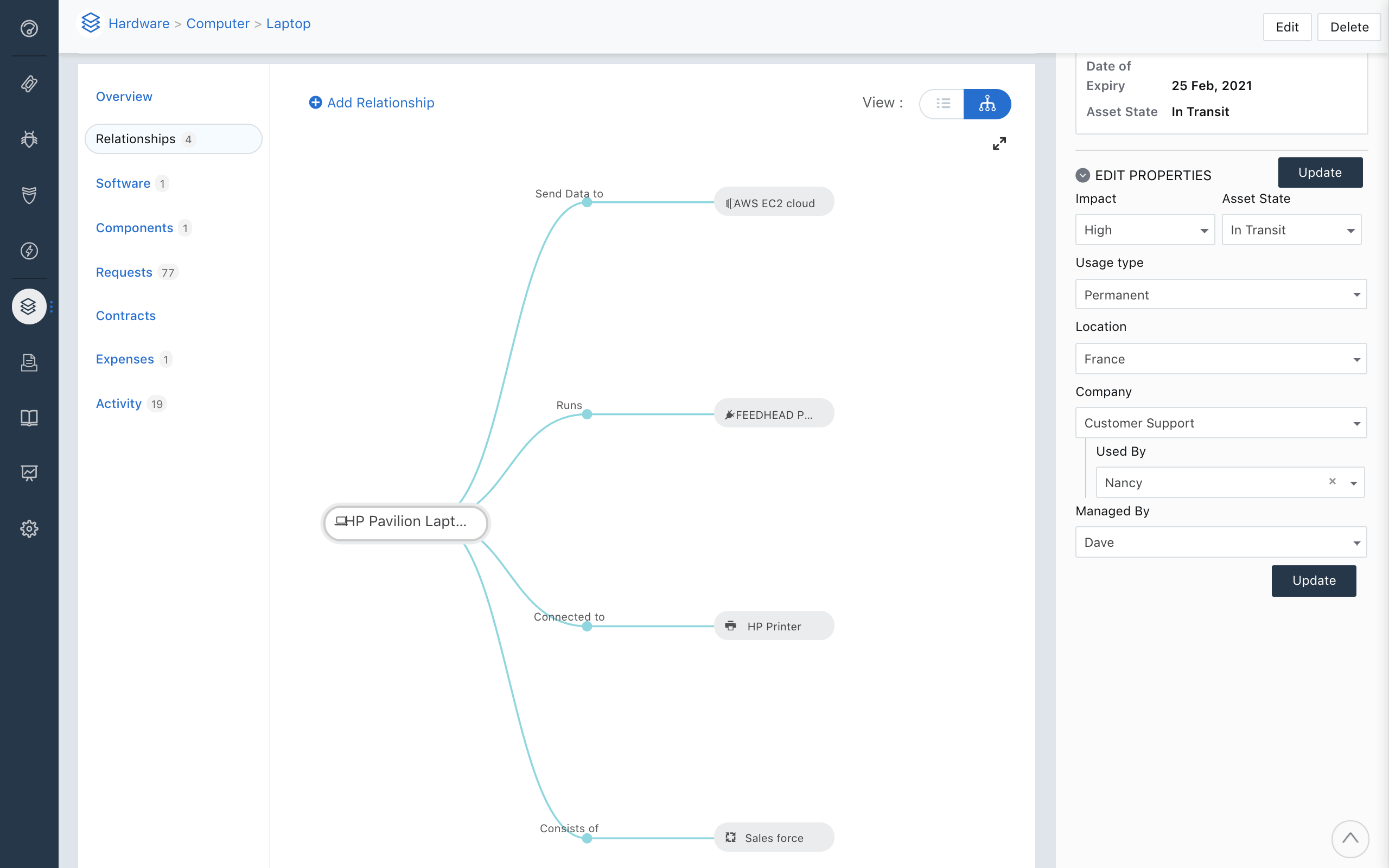 Get complete visibility into how your configuration items (CIs) are connected to the business by visualizing all the dependencies and relationships in an interactive map.