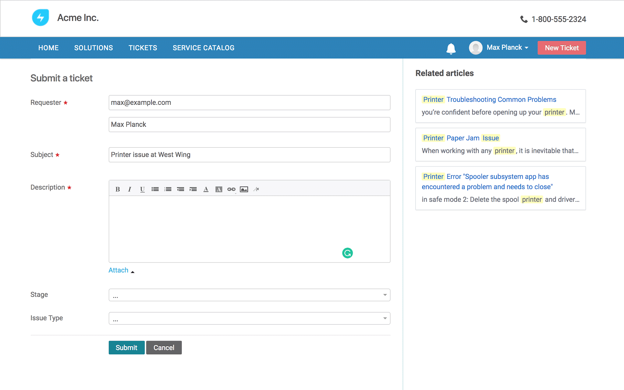 Auto suggest solution articles to end users when they’re trying to solve a problem.