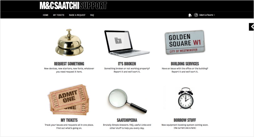 Freshservice also looks as though it’s a part of M&C Saatchi. The combination of it working well, being branded, and having a custom portal created in line with M&C Saatchi’s in-house design standards has increased buy-in across the business and has also improved the business perception of the IT department.