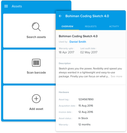 Managing assets throughout their lifecycle is not easy, especially when there are thousands of them. Freshservice lets you discover assets dynamically, but some cases call for more hands-on tracking mechanism. The Freshservice app comes with a barcode/QR code scanner to help you with that. You can tag assets with barcodes and use the app to quickly add new ones to the inventory. You can even pull up all the information you need about existing assets with a quick scan.